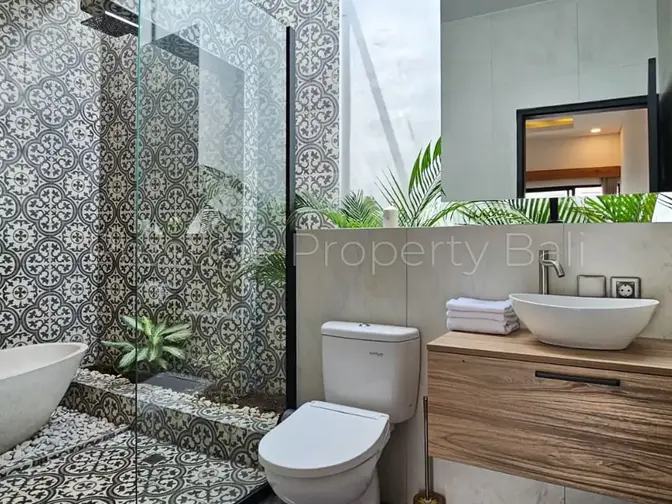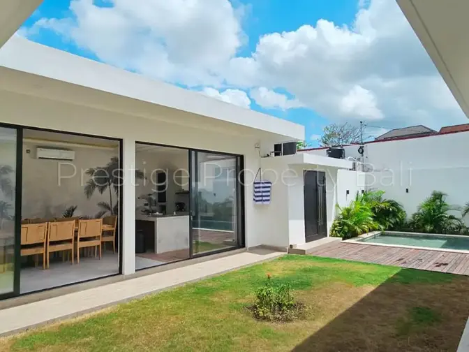 Available for yearly rental, this 3-bedroom villa is set on 330 sqm of land in a quiet residential area of Padonan, just 15 minutes from the beach and a short drive to central Canggu.