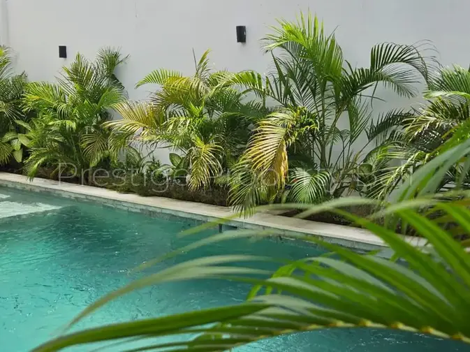 Outdoors, the villa features a 3.5m x 8m pool, a landscaped garden, and secure on-site parking. Additional highlights include a guest toilet and a dedicated storage room. Rental prices do not include any services.