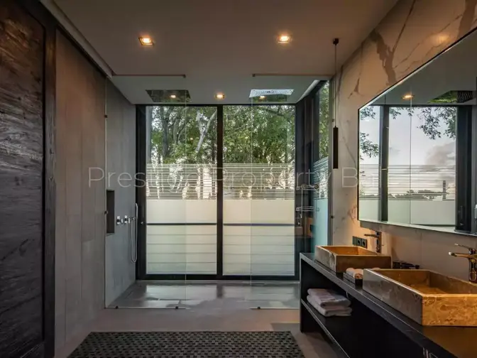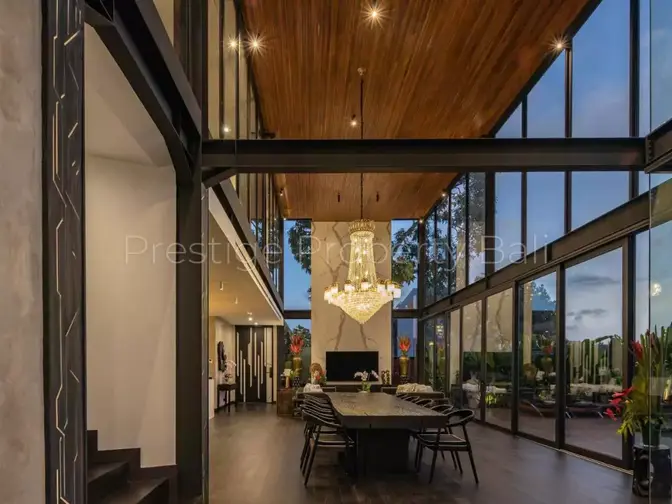 Located in the serene yet strategic area of Umalas—just minutes from both Canggu and Seminyak—this luxurious villa offers the perfect balance of privacy, comfort, and accessibility. Designed with a modern aesthetic, the property features an open-plan layout that welcomes natural light through expansive glass facades, creating a bright and airy atmosphere throughout.