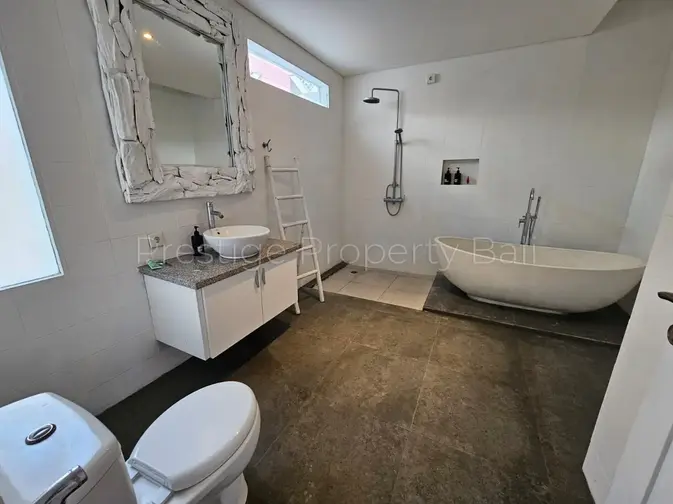 his beautiful 3-bedroom villa is available for yearly rental and is located in the peaceful and strategic area of Umalas, Bali. Each bedroom is spacious and comes with its own en-suite bathroom, complete with a relaxing bathtub.